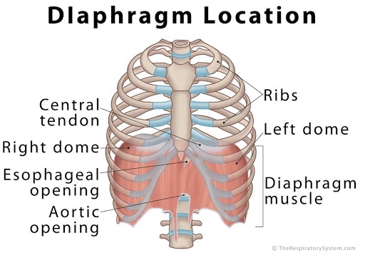 - The diaphragm is a muscle, so we must strengthen it in order to have better function. Find 3 books: One novel you’ve been saying you were going to read in quarantine but haven’t, a textbook, and if possible a heavier book like an encyclopedia. Imagine again the diaphragm as a balloon that fills with air on the inhale, and deflates on the exhale. Place the textbook on your stomach over the diaphragm location closer to the ribs and take 5 more deep breaths. Seeing the book move can be a better indicator of how you are restricted. Set your intention on getting the book to rise higher with each breath. Keep your spine glued to the floor as we don’t want to cheat and arch the back.